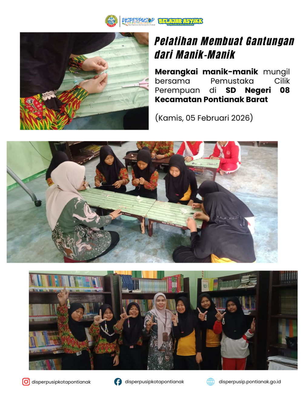 Belajar Asyikk Pelatihan Membuat Gantungan Kunci dari Manik-Manik bersama Pemustaka Cilik Perempuan di SD Negeri 08 Kecamatan Pontianak Barat